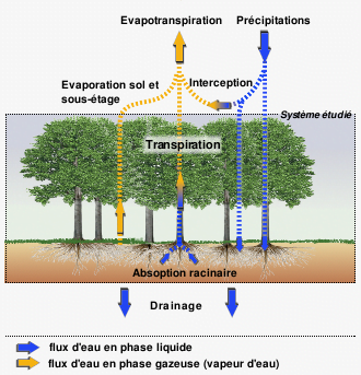Les forêts participent au cycle de l’eau en contribuant à son évaporation, ça on s’en doutait, mais aussi en formant des réserves souterraines ( aquifères, nappes phréatiques)